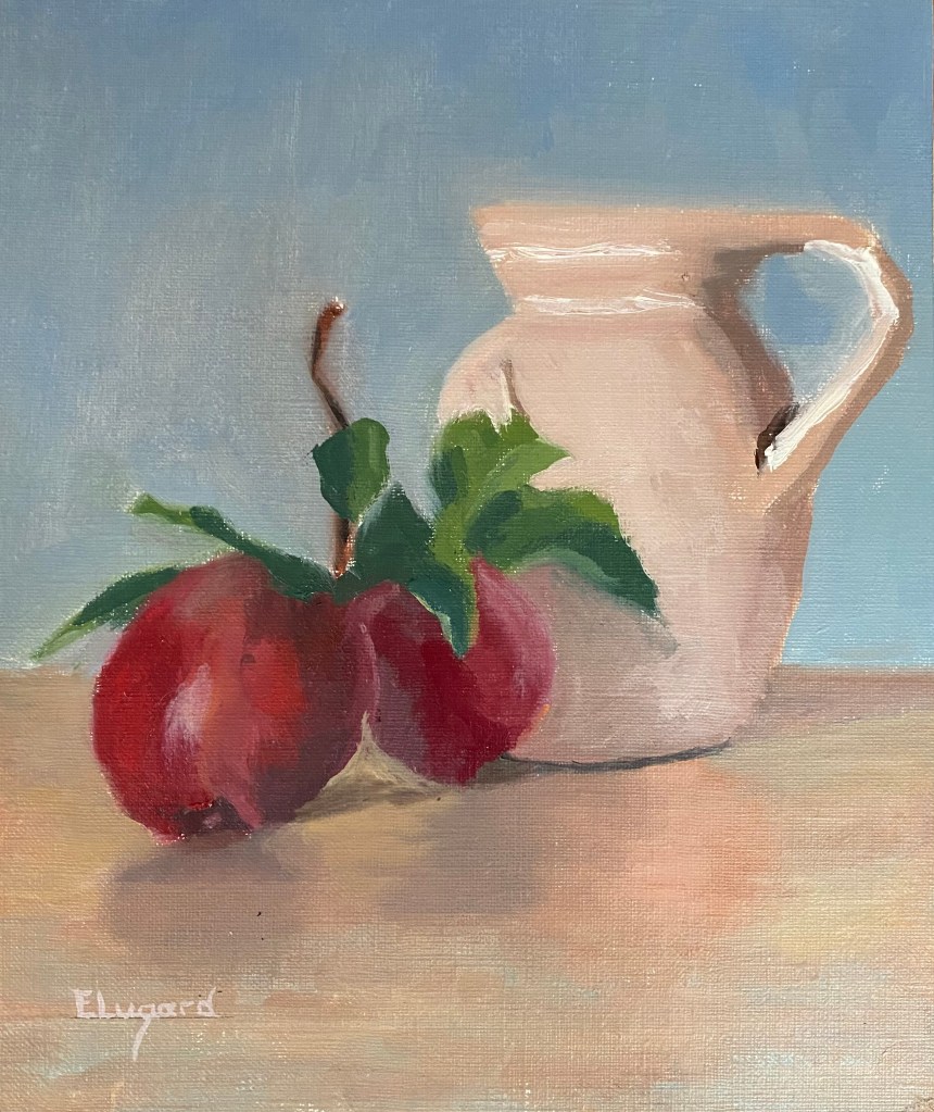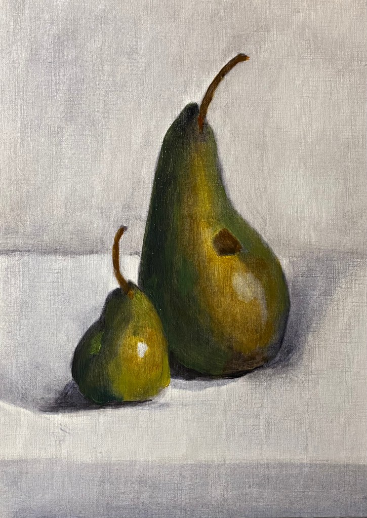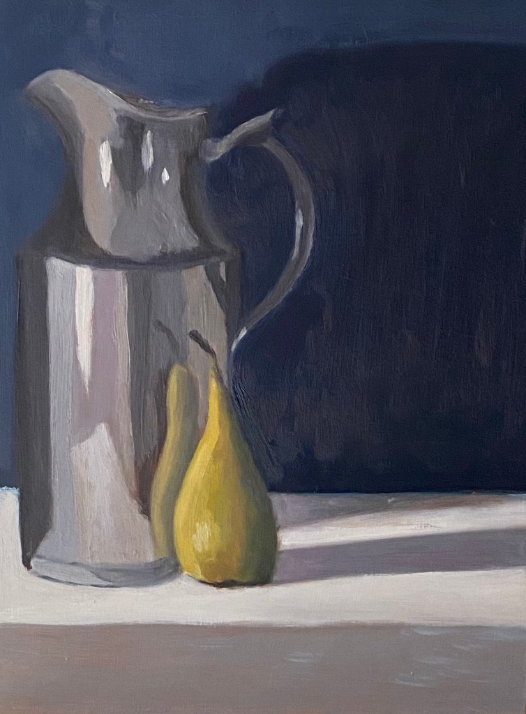 Al schilderend ga ik steeds meer zien van de vorm-toon- en kleurfacetten van mijn onderwerp. Dat roept meteen de wens op het nog een keer te schilderen, het kan zoveel mooier! Vandaar dat van een aantal taferelen twee werken zijn gemaakt.