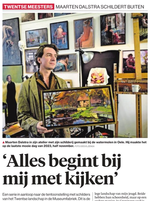 Op 12 januari 2024 heeft Maarten Dalstra een interview gegeven in TCTubantia. Schilderen is zijn beroep. Over het buiten schilderen in het Twentse landschap, “zonder zorgen over het licht want dat is er al”. Hij heeft ook ingezonden voor de tentoonstelling “schilders van het Twentse Landschap