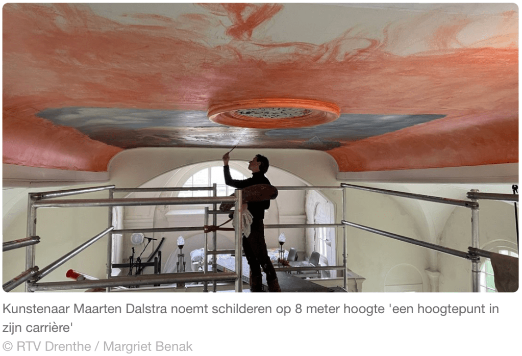 Samen met een aantal kunstenaars werkt Maarten Dalstra aan een plafondschildering in de voormalige Doopsgezinde kerk van Assen en wat nu het de expositieruimte is van kunstschilder Jan van Loon. Eind maart is de plafondschildering klaar.