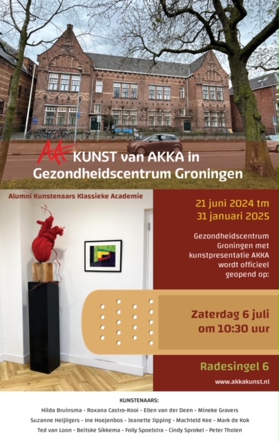 Van 21 juni 2024 t/m 31 januari 2025 exposeert TR lid Mark de Kok samen met andere Alumni Kunstenaars Klassieke Academie van Groningen in gezondheidcentrum Groningen aan de Radesingel 6